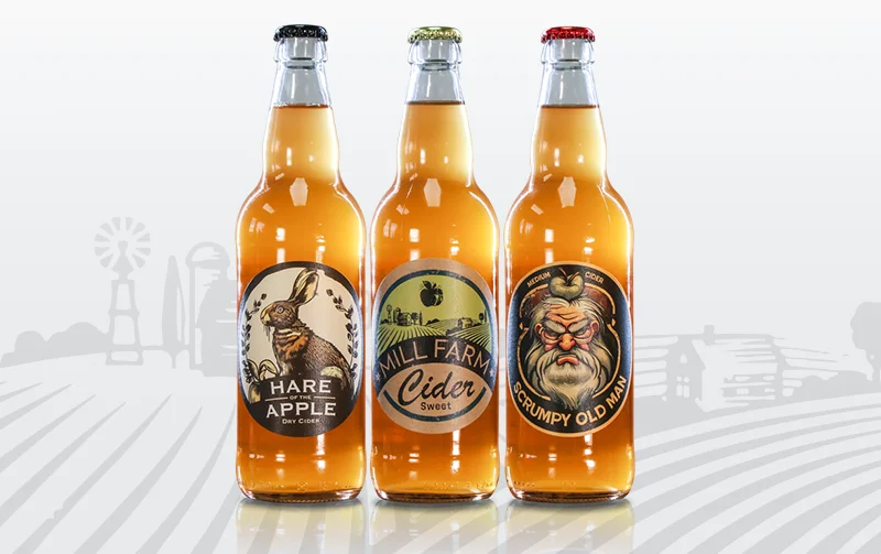 Cider labels for Mill Farm Cider.