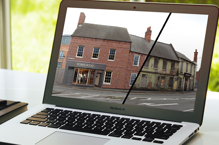 Photoshop retoration of the old Robin Hood Hotel Newark.